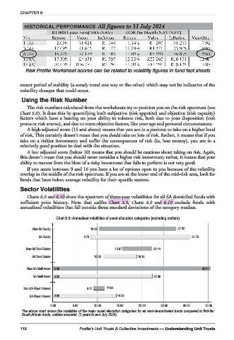 Charts 6.9 and 6.10 show the spectrum of three-year volatilities for all SA domiciled funds with
