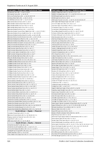 Momentum Namibia Real Growth Core Equity Fund Ret: - Inst: A, B1, B2 Amity BCI Equity Income Fund Ret: A Inst: -