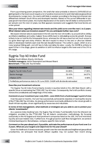 specific focus on replicating the FTSE/JSE Top 40 Index. Consequently, the fund’s portfolio closely