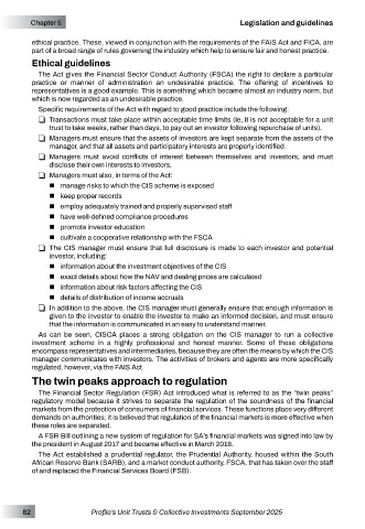 ethical practice. These, viewed in conjunction with the requirements of the FAIS Act and FICA, are